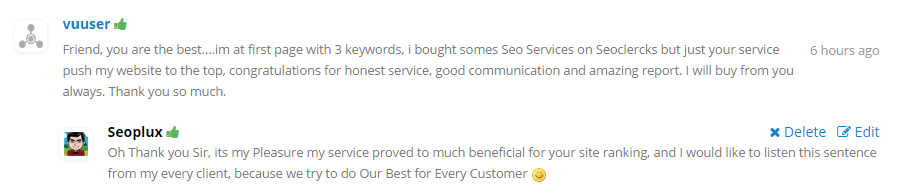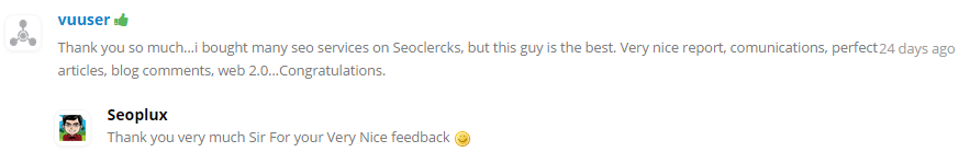• Staff selected service (One of the very first selected on Seoclerks.com and the only featured ranking service which has been selected and authorized by Admin)
